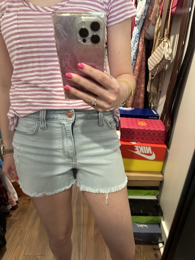 I live in either a dress or denim shorts all summer. These are from Target last year, and I love them!! I do not spend a ton on shorts!
