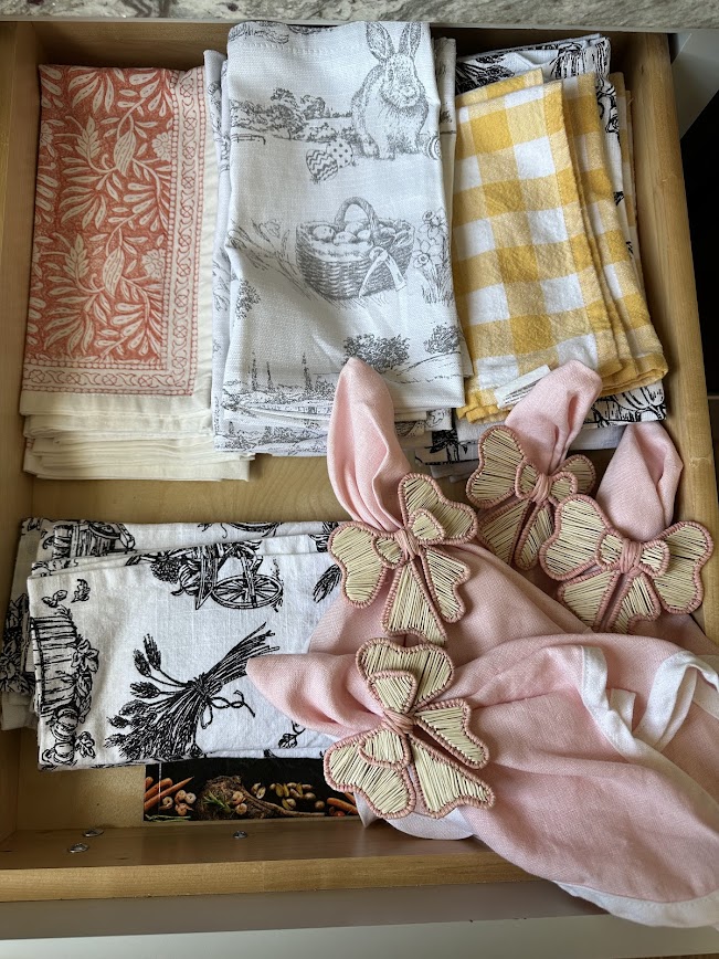 Here are my reusable napkins. Some of these are from Homegoods and some are from The Finery in Jackson. I have learned that it's best to wash and hang to dry, then steam or iron them!